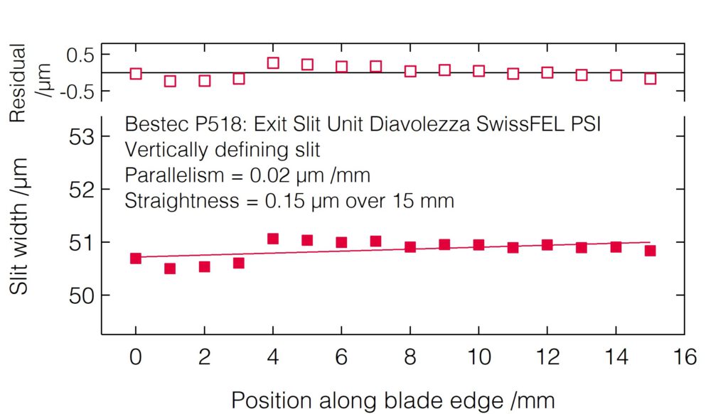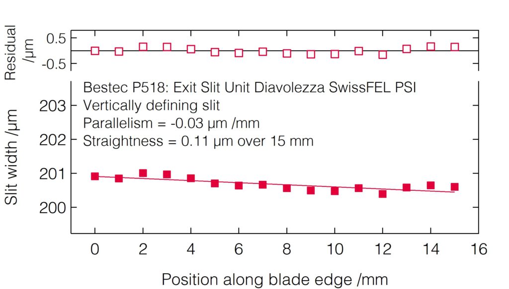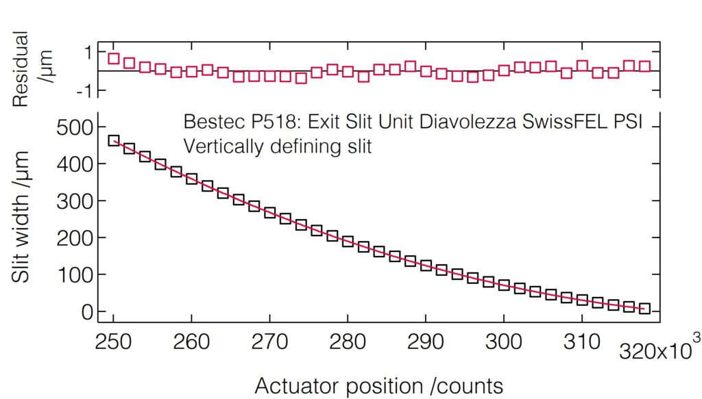 - Very small deviation (submicrometer) of the slit opening calibration curve from the theoretical non-linear slit opening function.