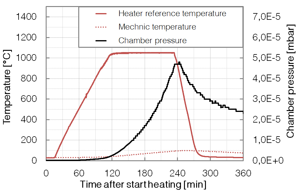 max. 10-2 mbar neutral oxygen / nitrogen gas (using a manual gas dosing valve)