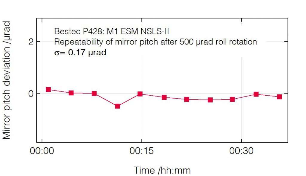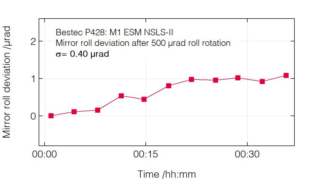 P428 - Roll deviation after pitch change - Mirror unit (M1) for soft X-ray synchrotron radiation at ESM beamline at the synchrotron radiation source NSLS-II, USA