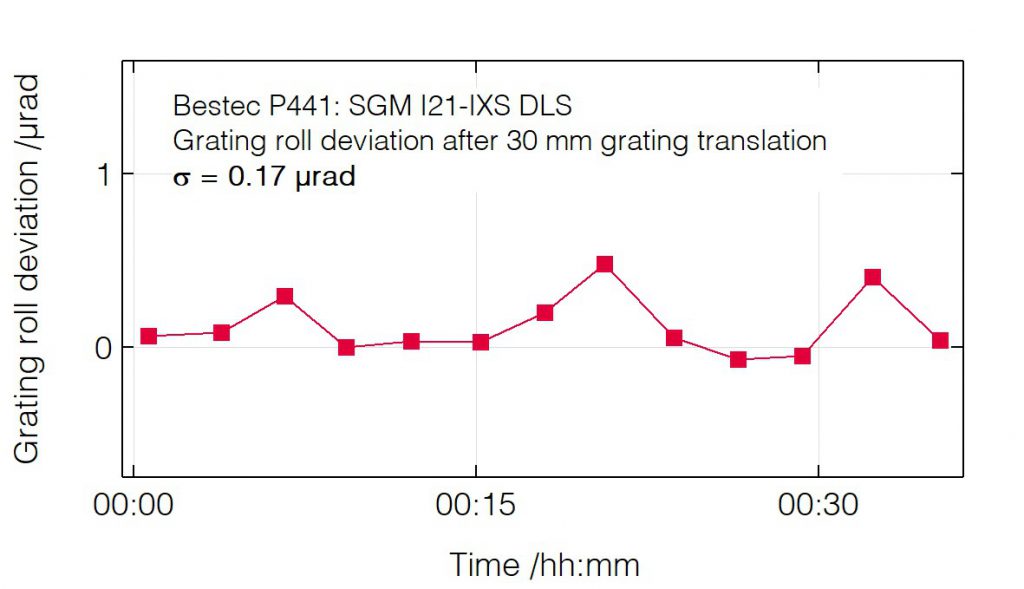 This grating unit was developed and built to be integrated into the high energy resolution RIXS system at I21-IXS at DLS. The challenge was to accomodate all components for standard functionality and for compensation of spectrometer related spurious movements into a very limited space, without perfomance lost.