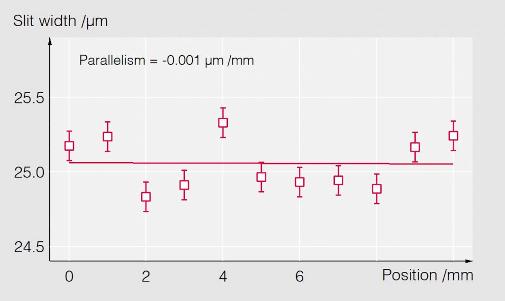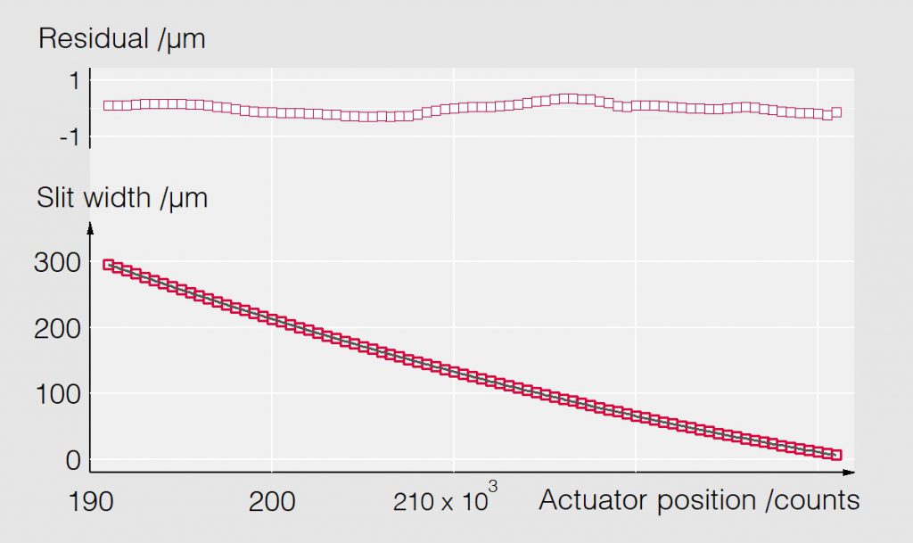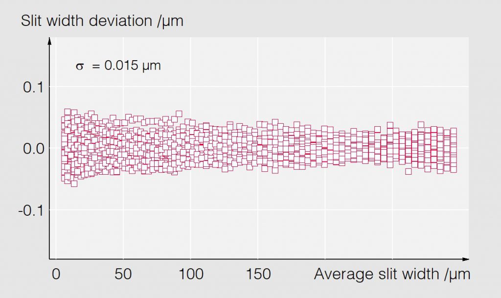 The nonlinear characteristic of the symmetrically opening slit mechanism allows for setting small slit openings with highest accuracy, whereas bigger openings are set very fast.