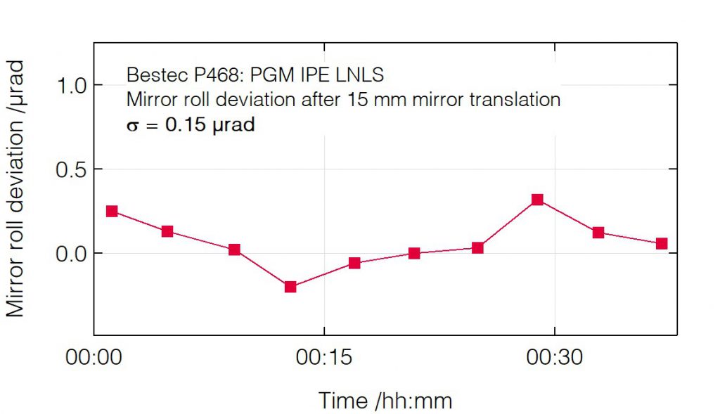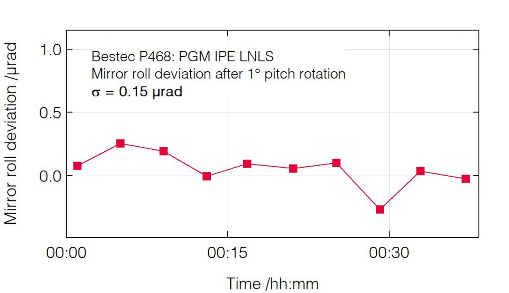 P468 - Roll deviation after pitch change (mirror) - Plane grating monochromator (PGM) for soft X-ray synchrotron radiation at IPE beamline at Sirius Synchrotron Light Source, LNLS Brazil