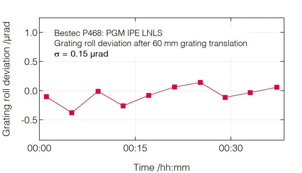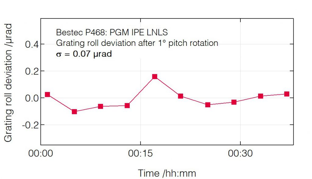 P468 - Roll deviation after pitch change (grating) - Plane grating monochromator (PGM) for soft X-ray synchrotron radiation at IPE beamline at Sirius Synchrotron Light Source, LNLS Brazil