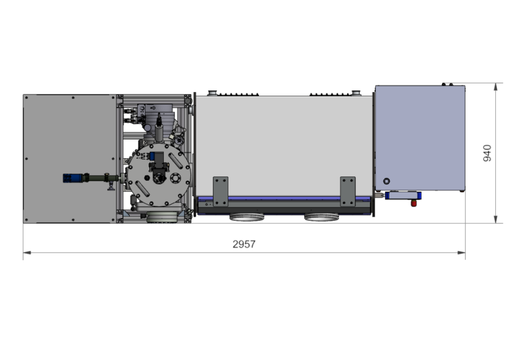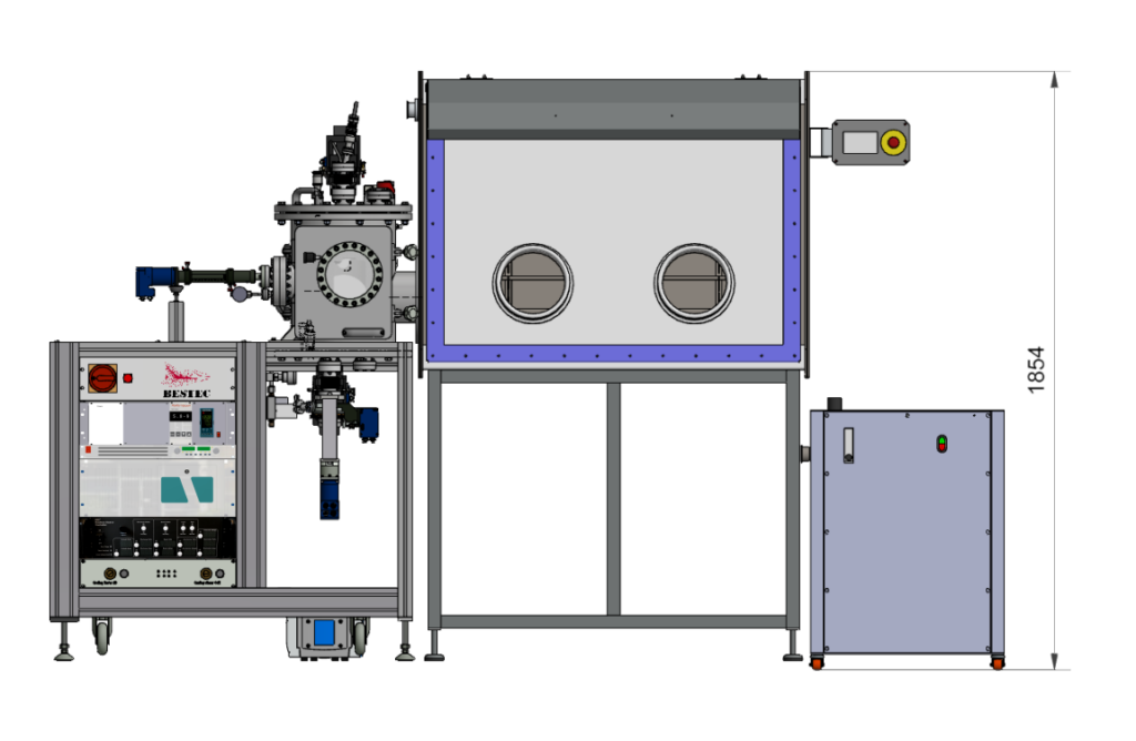 - Fully motorized 2 axes sample manipulator with intergated shutter & mask positioning and maximal sample temperature well above 800°C.