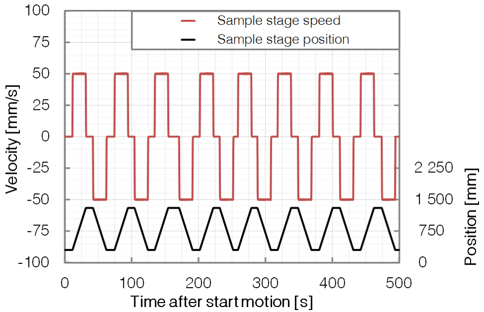 Motorized sample translation axis with motion speed range of min. 1 mm/s up to max. 100 mm/s, incl. speed profile feature