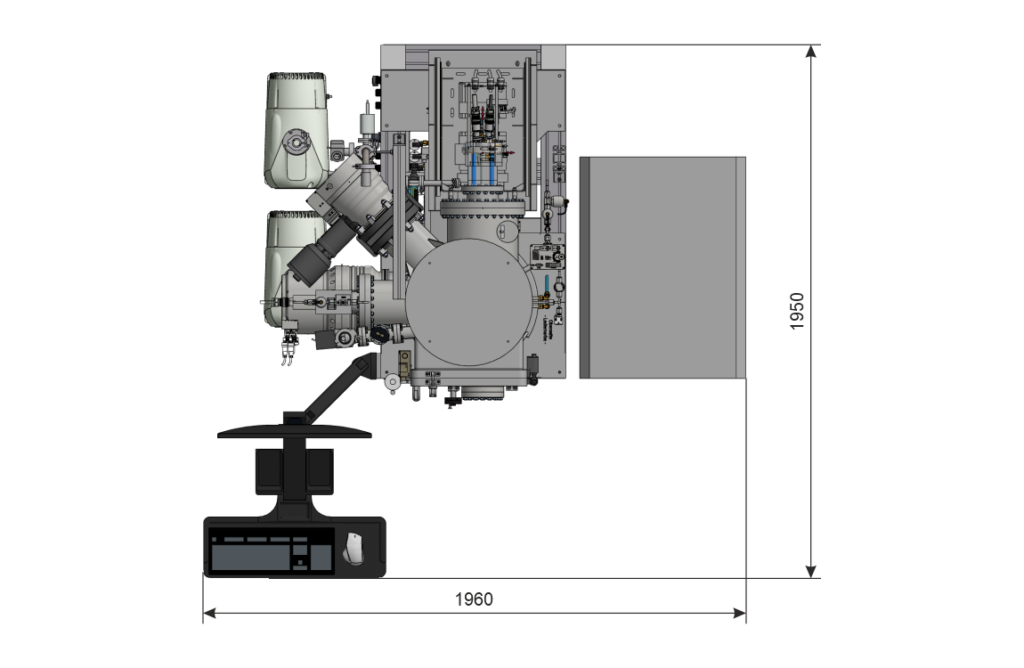 - Sample manipulator with two motorized axes (stage tilt and sample rotation) and maximal sample temperature above 900°C.
