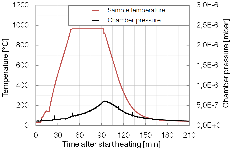 Room temperature (not stabilized) up to 950°C at sample (short time heating) / > 750°C at sample (long time heating)