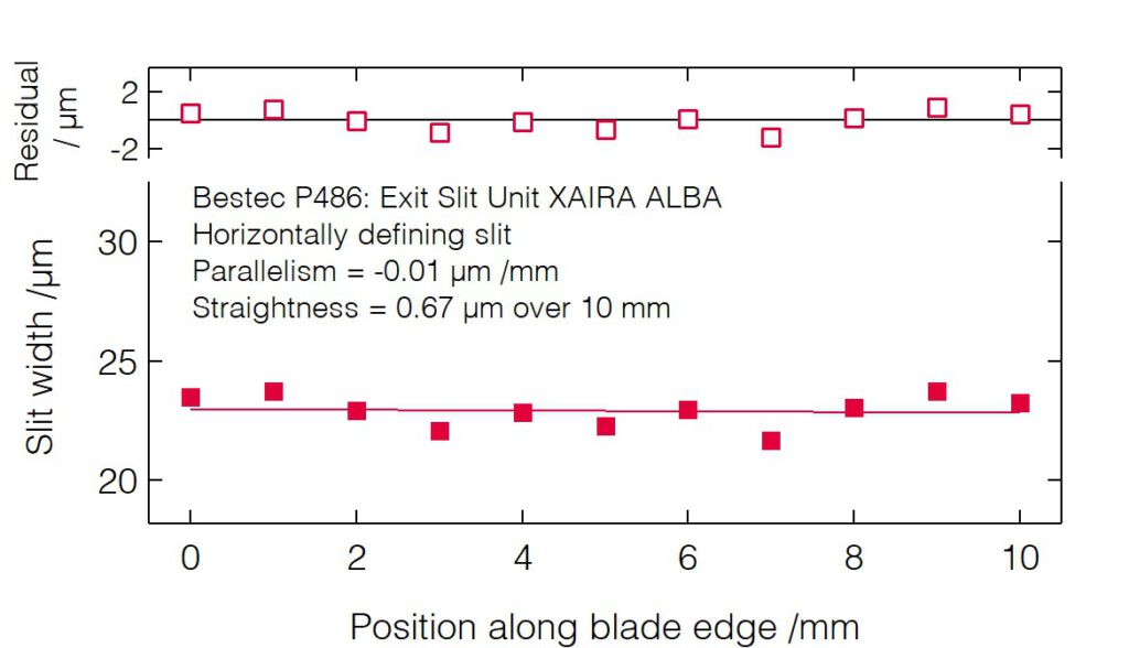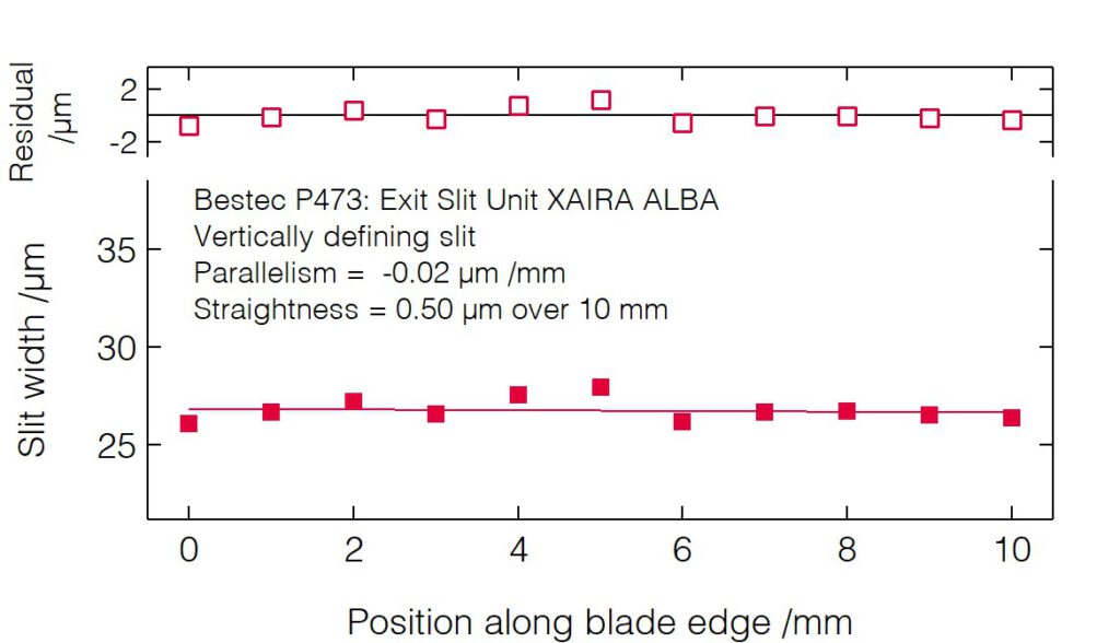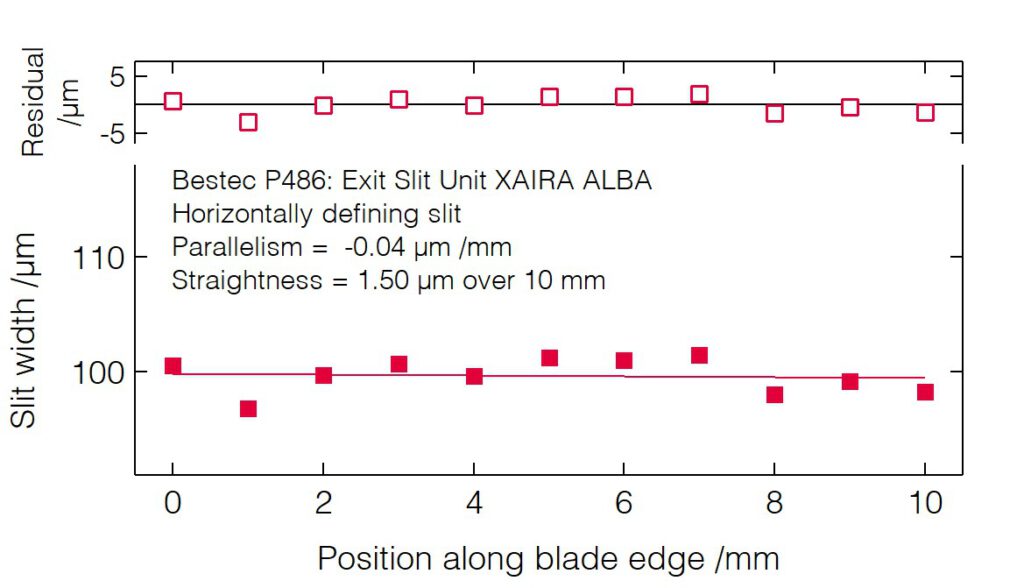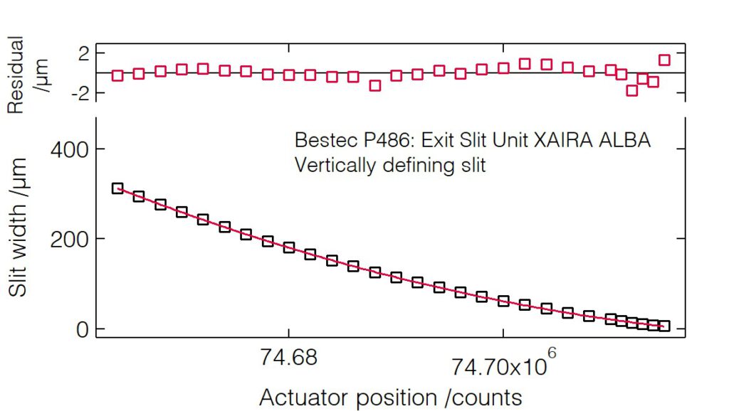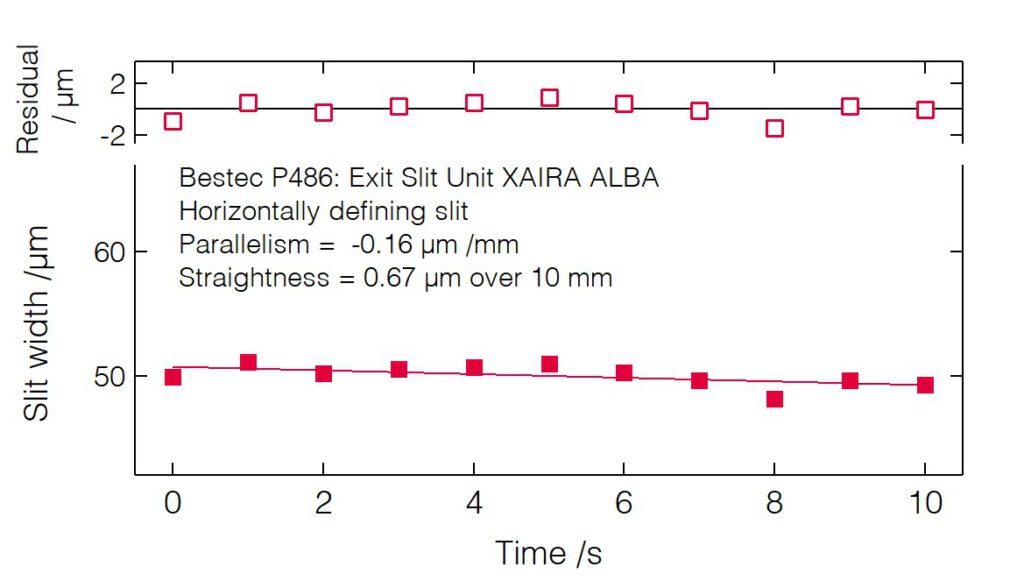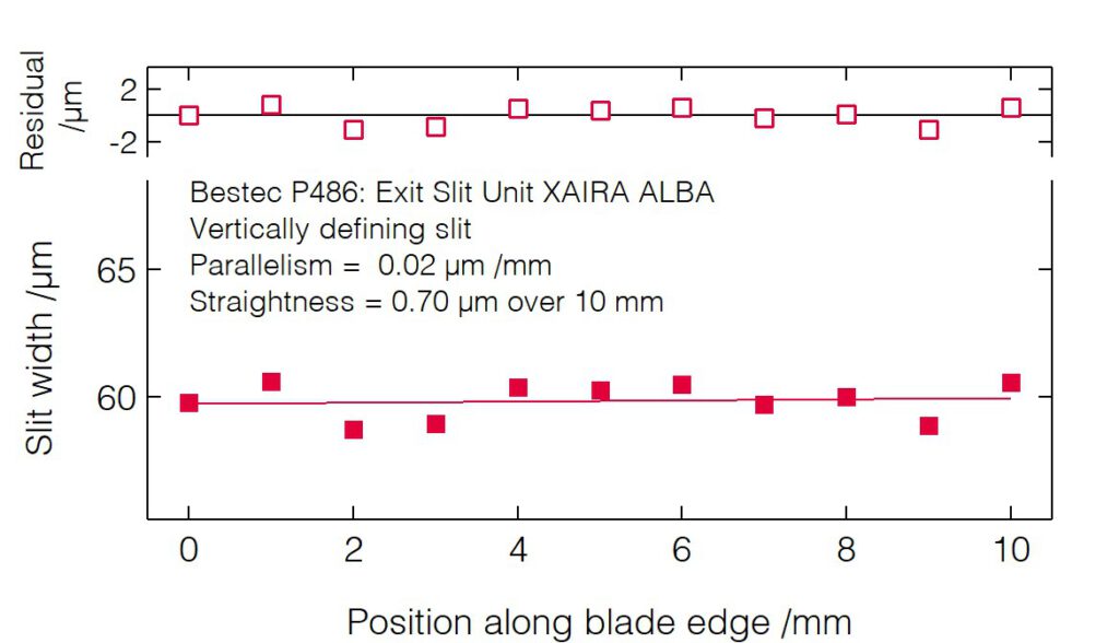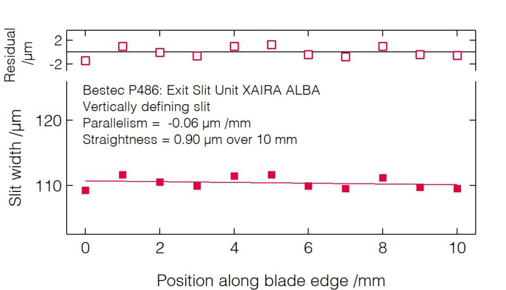 - Small deviation of the slit opening calibration curve from the theoretical non-linear slit opening function.