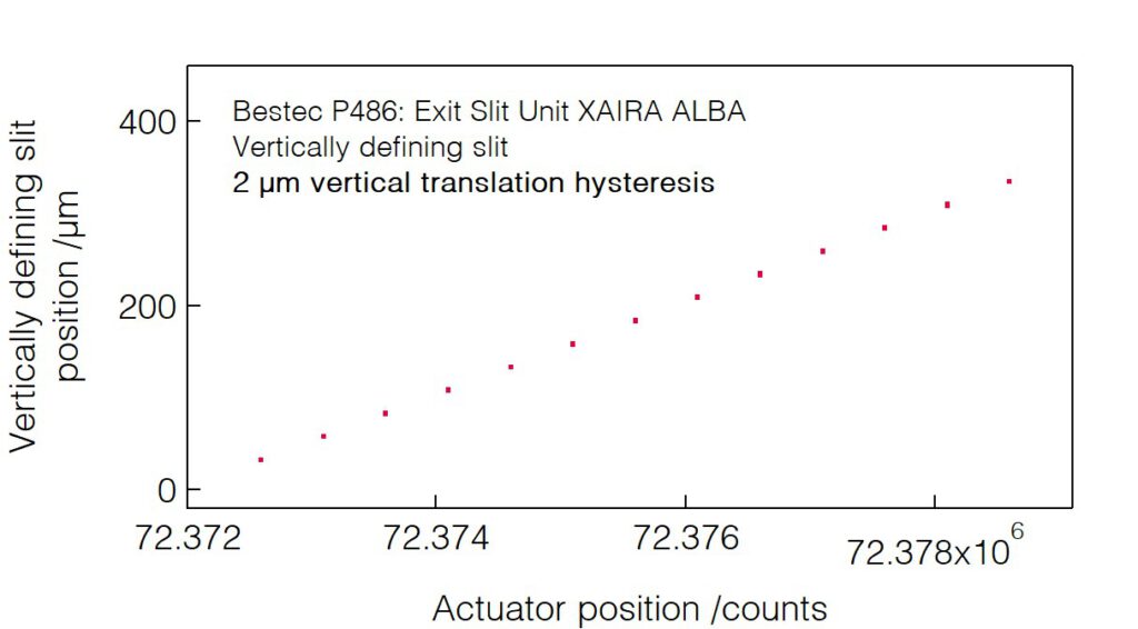 - Motorized and encoded slits opening, symmetric opening, non-linear opening characteristics.